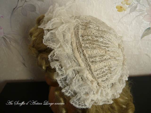 Ravissant bonnet ancien enfant ou poupée ** linge ancien couleur ivoire