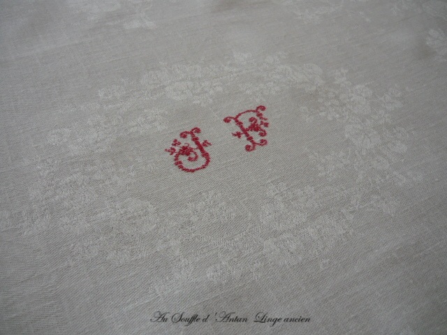 Une idée cadeau du linge ancien brodé J F serviette ancien damassé blanc