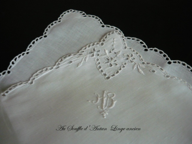 • linge ancien une idée cadeau H B ravissant mouchoir brodé main Linge ancien en lin satiné blanc   Prix : 18.00 euros Réf. : 8685   Article disponible (En stock) En savoir plus