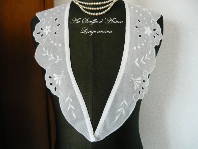 linge ancien boutique en ligne brocante antiquité col brodé à la main et broderie