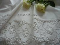 linge ancien - linge de maison blanc volant bordé de dentelle
