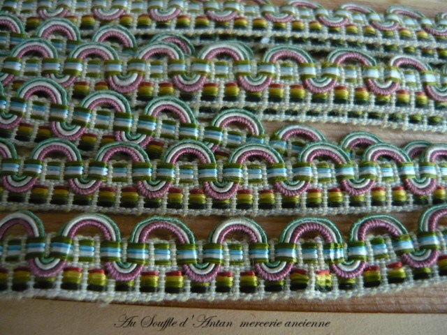 linge ancien - mercerie ancienne - galon passementerie or et vert