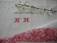 Monogramme ancien H M sur serviette linge ancien de table