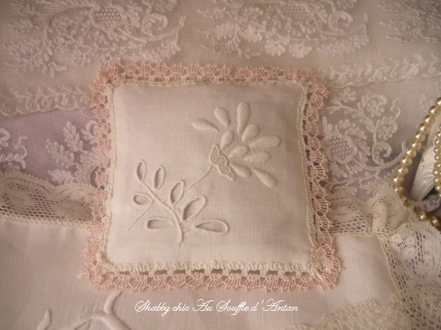 créations // shabby chic petit coussin brodé rempli de fleurs de lavande
