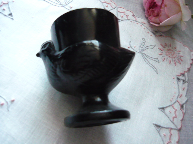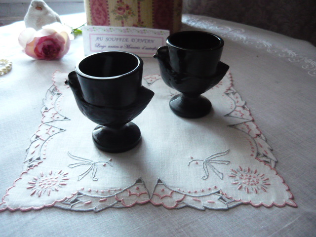 2 coquetiers poule noire verre épais objets anciens plein de charme