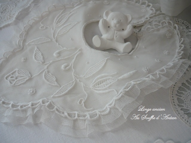 **Ravissant bavoir ancien de bébé ** linge ancien raffiné brodé main