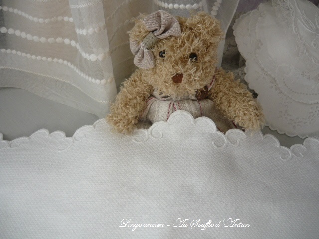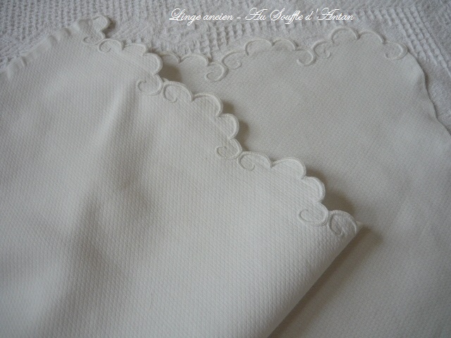 linge ancien blanc linge de lit ou pour la décoration bordure festonnée au point de rose broderie fait main linge ancien de lit brodé à la main piqué de coton molletonné bien blanc une idée cadeau linge ancien pour bébé ou pour la décoration de votre intérieur