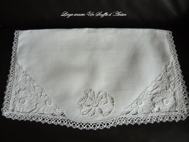 pochette à lingerie ancienne, du beau linge ancien brodé le rabat est décoré de broderie raffinée du linge ancien comme on aime belle pochette ancienne brodée linge ancien //linge ancien divers pochette à lingerie en lin broderie et dentelle linge ancien au charme d'antan