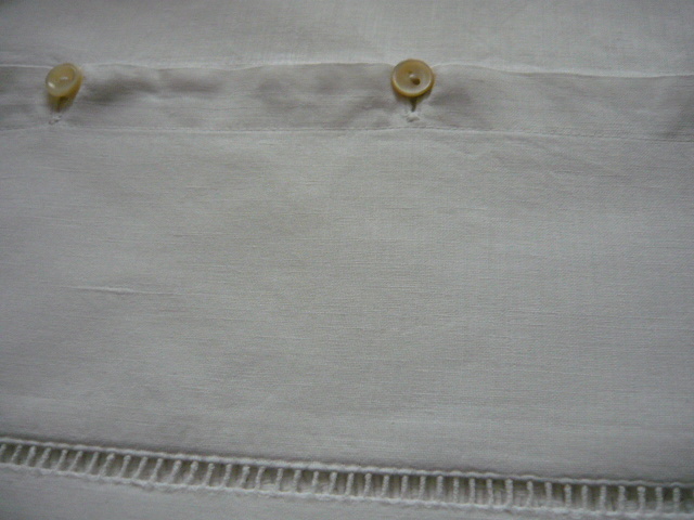 La taie d'oreiller se ferme à l'arrière par 5 boutons anciens en nacre.