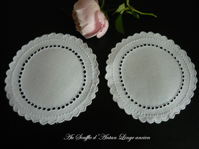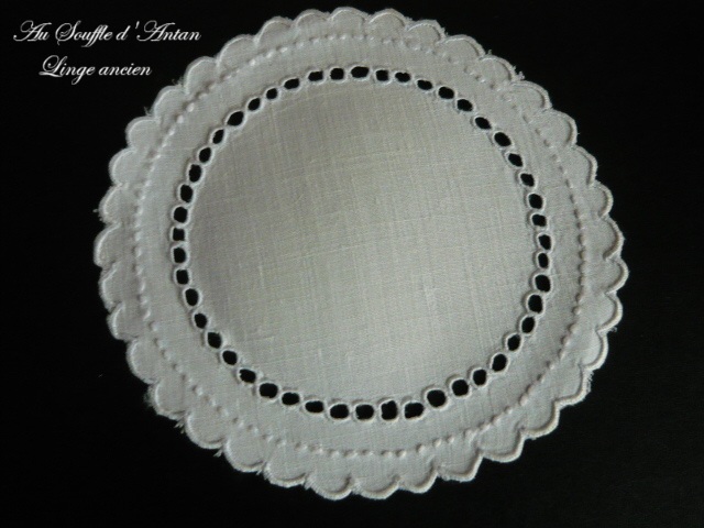 lot de 2 napperons ronds ø 12 cm Linge ancien blanc brodé