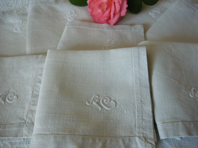 série de 8 serviettes à broderie FC linge ancien de table en lin