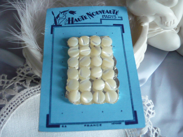 Plaque de 24 boutons anciens de nacre "Haute Nouveauté" - Paris -FRANCE
