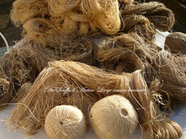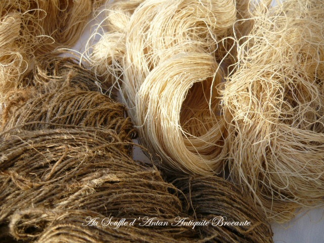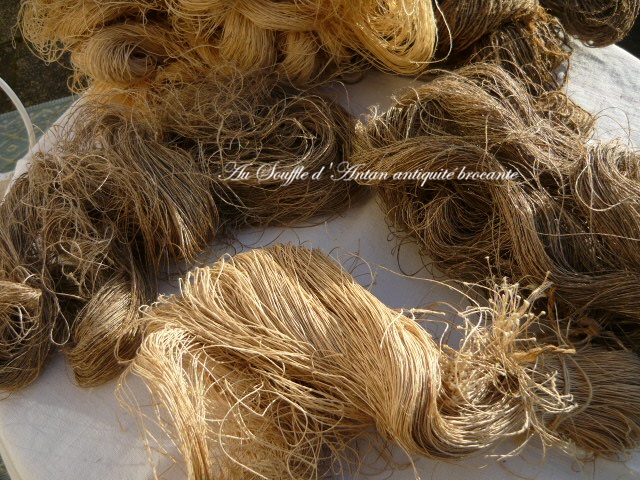 Ce sont des matières naturelles non traitées des fournitures françaises artisanales du val de Loire de la fin XIXe siècle/ tout début 1900 le fil est en très bon état et encore très solide.