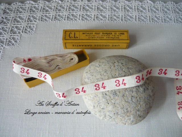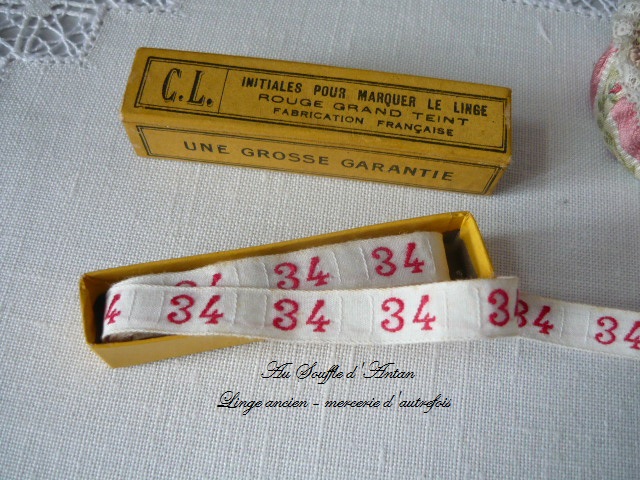 34 pour marquer le linge dans sa boite d'origine porte la mention C. L.