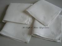 4 mouchoirs lin brodés de la lettre M linge ancien blanc 29 x 29 cm