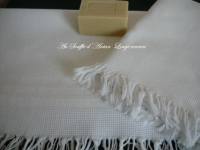 **2 serviettes de toilette avec franges** linge ancien blanc de qualité