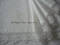 linge ancien - linge de maison blanc volant bordé de dentelle