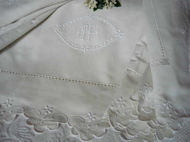 brocante en ligne boutique linge ancien linge de maison drap nappe serviettes torchon du beau textile ancien , du linge ancien brodé pour la décoration