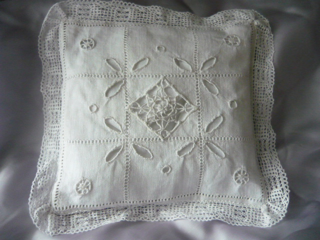 Charmant coussin brodé à la main *linge ancien collection blanc*