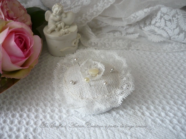 Pique aiguilles épingles blanc chanvre dentelle fait maison