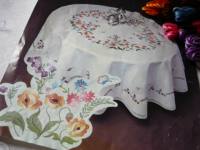 Grand drap ancien broderie florale fait main linge ancien en lin