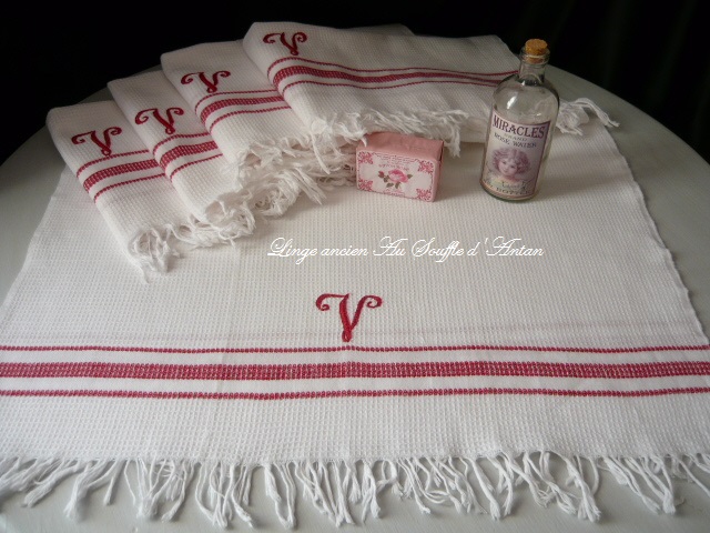 M C // Superbe drap ancien brodé linge ancien en lin 228 x 295 cm