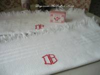 bordure de drap linge ancien lin brodé pour la couture lettres MR