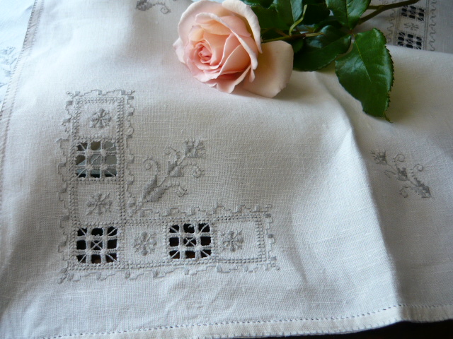 linge ancien // linge ancien de maison // superbe centre de table brodé