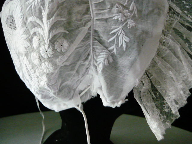 bonnet ancien coiffe de mariée coiffe XIXe broderie et dentelle belle coiffe de dame des temps jadis Linge ancien blanc