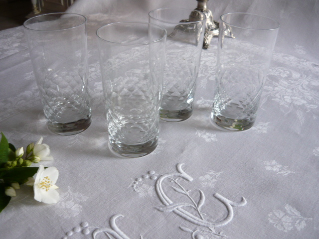 4 beaux verres anciens CRISTAL BACCARAT écailles modèle Chauny