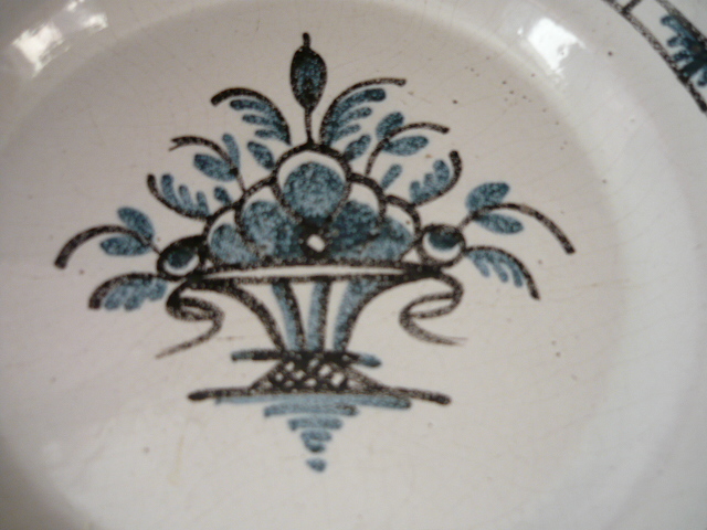 Superbe plat XIX e en faïence de Rouen appelé cul noir