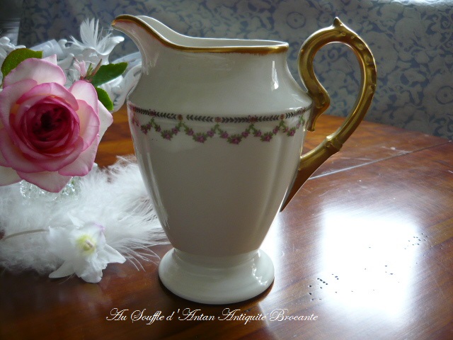 Superbe pichet crémier ancien porcelaine de Limoges à décor de roses
