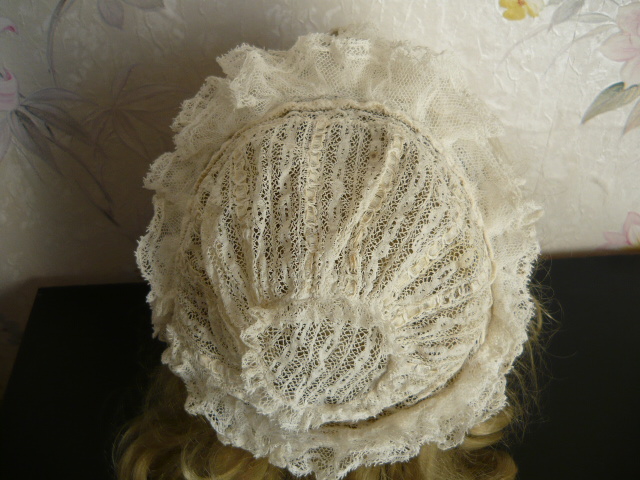 Ravissant bonnet ancien enfant ou poupée ** linge ancien couleur ivoire