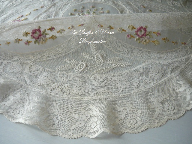 Le pourtour se termine par une superbe dentelle de Valenciennes de 5.5 cm de large. C'est d'une grande finesse.