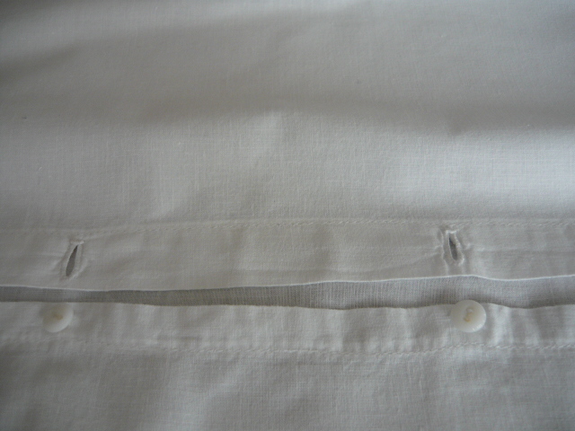 La taie d'oreiller se ferme à l'arrière par 5 boutons anciens en opaline blanche.