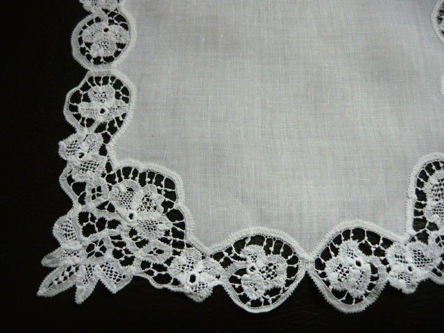 délicieux mouchoir ancien bordé d'une belle dentelle faite à la main !