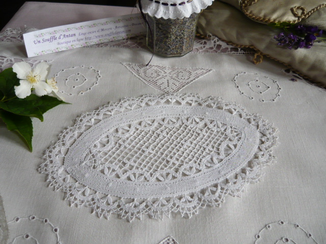 Un superbe napperon ancien entièrement en dentelle réalisée à la main avec un fil de lin très fin