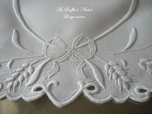 linge ancien super en décoration belle pièce de linge ancien brodé à la main broderie ancienne fait main belle broderie de noeud et d'épis de blé un superbe travail fait main boutique en ligne brocante linge ancien mercerie de belles antiquités pleines de charme