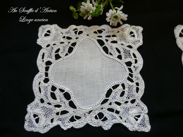 2 napperons lin et dentelle ancienne linge ancien de belle qualité