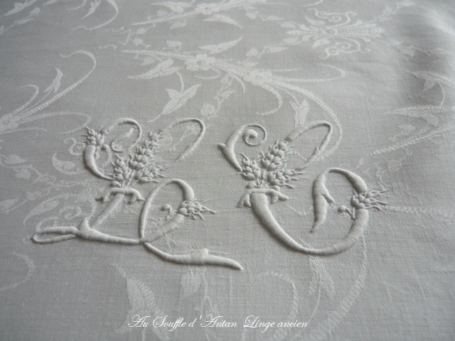 Chaque serviette est brodée en son centre d'un splendide monogramme L C aux lettres bien en relief, une broderie réalisée par des mains expertes.