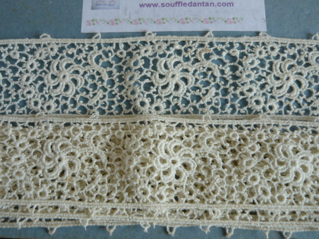 Dentelle ancienne en très bon état. Un métrage intéressant, idéal pour la restauration d'une toilette ancienne