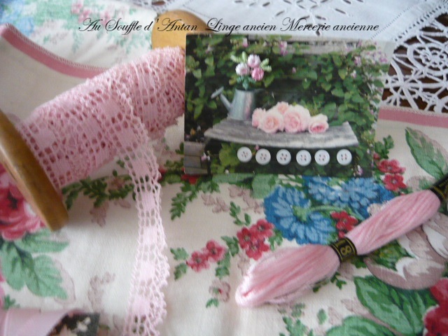 lot linge ancien & mercerie ancienne Roses pour vos loisirs créatifs, couture
