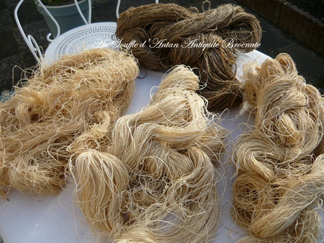 Ce sont des matières naturelles non traitées des fournitures françaises artisanales du val de Loire de la fin XIXe siècle/ tout début 1900 le fil est en très bon état et encore très solide.