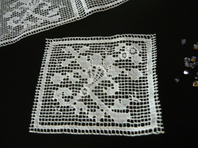 Motif à appliquer dentelle ancienne au filet 7.5 cm x8.5 cm mercerie ancienne