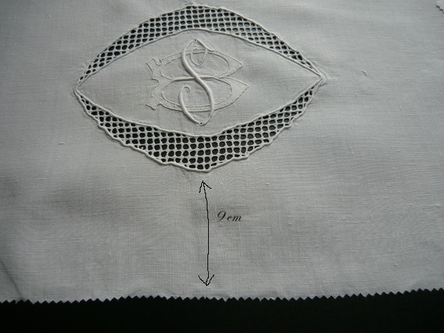 L'autre d'une partie de drap en lin blanc, les lettres entrelacées sont dans un cartouche de